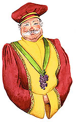 Le compagnon porte la robe rouge avec parements d’or et bonnet pointu, une splendide grappe de raisin en guise de sautoir rappelle leur vocation vineuse. Ils la portent légitimement après une intronisation solennelle au cours de laquelle ils prêtent serment de :